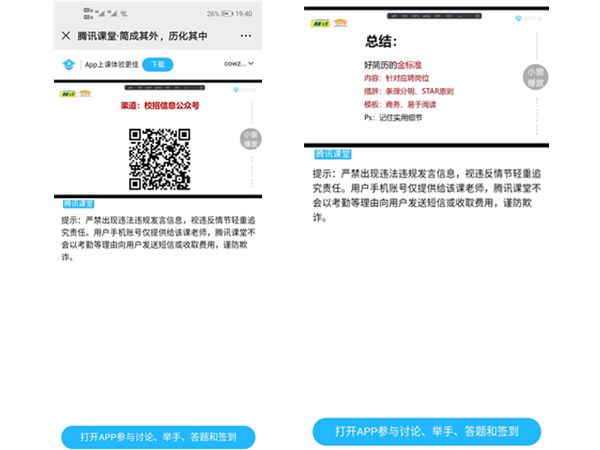 2020年4月25日晚上6点半,土木建筑工程学院学工办组织辅导员和2017级、2016级学生通过腾讯课堂的直播平台观看了“教你3秒钟用简历打动HR的心”专题讲座。
