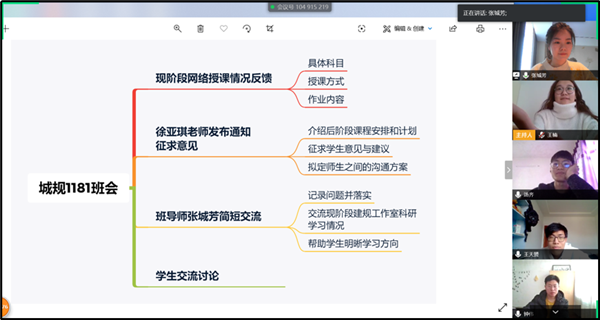 定期召开主题班会。导师班主任杨易、张城芳,辅导员杨柳、甘誉平分别结合学生学习状态、毕业就业、在线学习方法等内容,有针对性地开展主题班会,提高学生工作质量和效率。