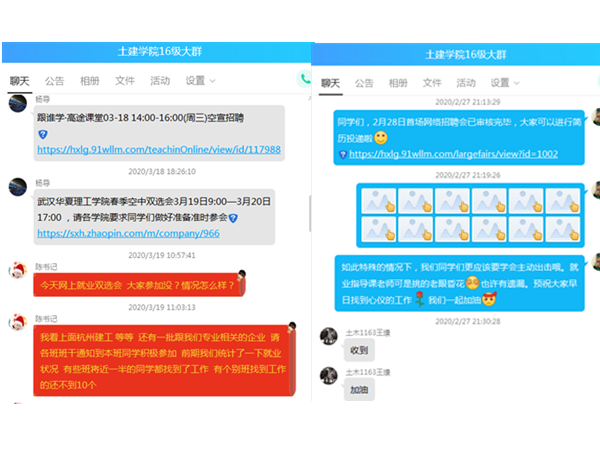 加强日常管理工作。把学生生命安全和身体健康放在第一位,充分利用好“完美校园”APP,督促学生完成每日健康打卡,做好疫情的排查、汇总及上报工作。在防疫期间,利用网络平台加强与学生的交流,做好延期开学的解释工作,缓解学生及家长焦急情绪,特别是着重加强对贫困、残疾、重点学生进行一对一帮扶。在线课程开设前期,做好学生在线学习设备和网络情况调查并及时反馈,后期严格落实辅导员在线随堂听课制度,积极配合任课老师,做好一日一反馈,确保学院教学工作的有序开展。多管齐下,形成合力,全方位为考研学生服务,举办两场线上交流活动,进行复试前辅导。关注学生就业,线上组织学生应聘宁波建工、十五冶等国企,并安排长江路桥、十六化建等多家国企开展空中宣讲会,推动就业工作正常进展。