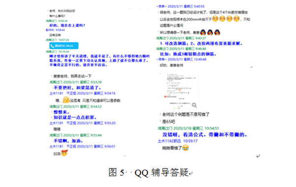 一些学生不愿在QQ大群就遇到的问题与老师交流,更希望与老师面对面求解疑惑,这些学生大多求知欲强烈,学习刻苦,这部分学生加为QQ好友随时辅导答疑。对于差生,了解学习困难原因并传授学习方法,个别辅导。要求他们尽可能完成作业,跟上学习进度。见图5