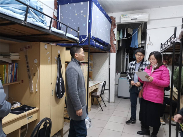 为保障学生人身及财产安全,强化安全意识,2019年12月12日晚,土木建筑工程学院全体辅导员在学工办主任潘晶的带领下,在学生宿舍楼进行晚查寝。