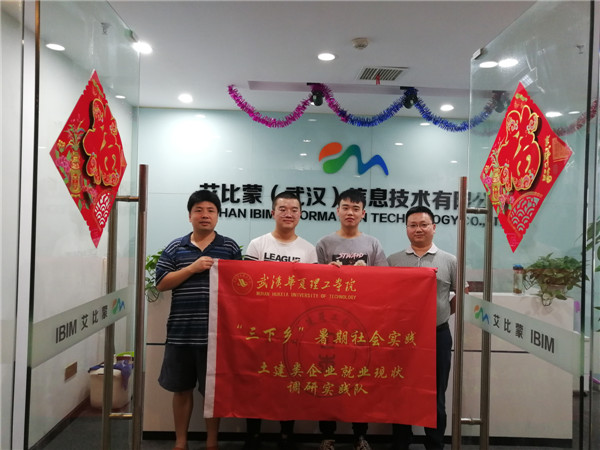2019年7月26日下午2点,土木建筑工程学院教工三支部朱韶茹、吴振琦和毕业班学生周喆等人到BIM创新企业——艾比蒙(武汉)信息技术有限公司参观走访,进行调研。
