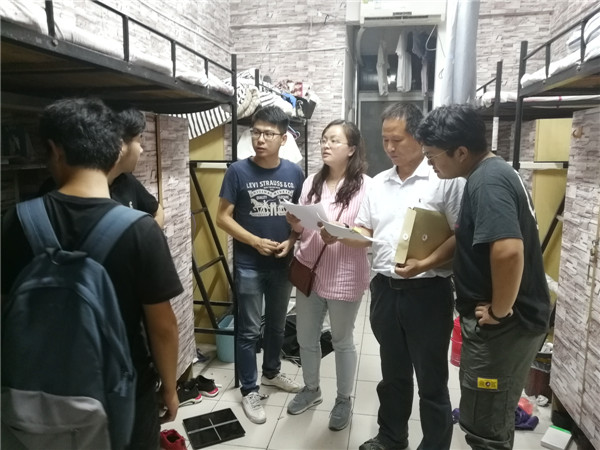 2019年6月18日晚上7点,土木建筑工程学院学工办主任潘晶、党总支秘书吴振琦及毕业班辅导员王江洪、李林森老师等一同到宿舍实地了解毕业生离校状况和思想动态。