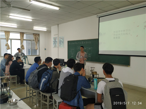 紧接着,摇篮工程师协会姜华明同学对结构设计大赛进行了简单说明,随后摇篮工程师协会李中林同学为本次比赛的赛题做简单的介绍分析,说明模型制作要求和模型加载的规则。