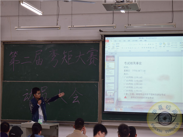 首先,主持人向大家讲解了本次大赛的重要性。由主持人介绍“弯矩大赛”的考试的时间及地点、题目数量及类型和成绩评定等相关事宜。并表明土木所有参赛同学成绩将记入期末结构力学成绩并对成绩优秀同学颁发荣誉证书。