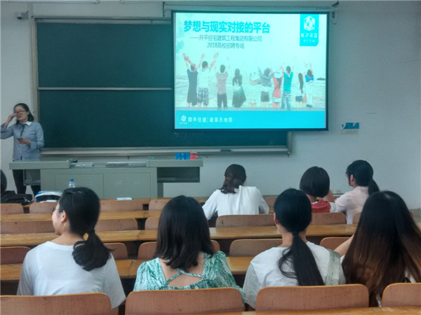 2017年10月9日下午3点,开平住宅建筑工程集团有限公司在教学楼1-205教室举行了招聘宣讲会。我院党总支秘书吴振琦老师、毕业班辅导员陈世益、李林森和土木工程、工程管理等专业近30名应届毕业生参与了此次宣讲会。