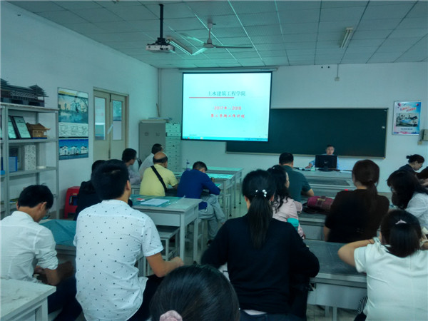 2017年9月21日下午2点,土木建筑工程学院在实验中心模型实验室召开全院教师大会,会议由院长杨和礼教授主持,学工办主任潘晶、党总支秘书吴振琦及全体教职工参加。