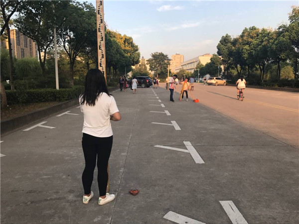 参赛的8名同学分成水准和导线两组,每组四人,顶着烈日,每天在规定地点按四等水准测量要求施测长度1公里左右的闭合水准路线, 4个队员轮流观测、记录和扶尺。形成后视标尺黑面和红面、前视标尺黑面和红面。从开始检测到仪器装箱、上交内外业全部成果的完整过程计时,所在操作必须在规定的90分钟内完成。一次又一次反复实验,尽管汗流浃背,但同学们仍然热情高涨。