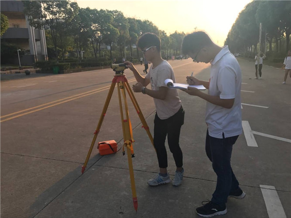 从2017年7月至今,土木建筑工程学院8名同学在土木工程系副主任朱韶茹、金莹老师的指导下,战胜高温酷暑,牺牲休息时间,积极备战湖北省高等院校土建类专业工程测量职业技能竞赛。