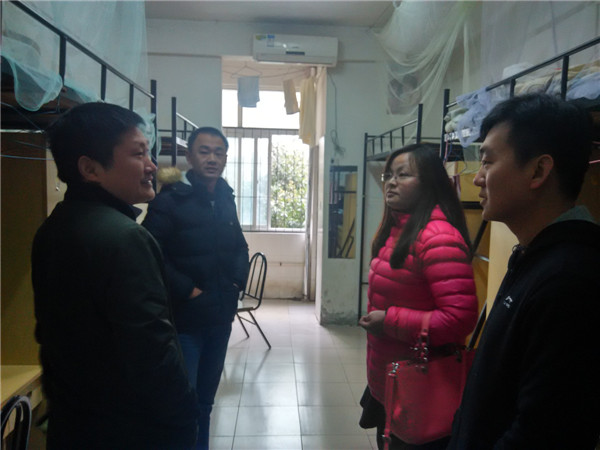 在向宿管阿姨了解学生返校情况后,学工办老师们对学生寝室,特别是已经返校学生的寝室进行了细致入微的检查,亲切询问了同学们的寒假生活情况,嘱咐同学们提高安全隐患意识,注意清理宿舍垃圾和门口的“牛皮癣”,保持户内外整洁,为后期开展“自带垃圾下楼”做好准备。鼓励毕业班同学们努力工作,积极进取,早日得到所在单位的认可,获得事业上的成功。