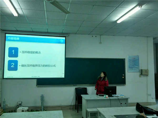 为了进一步调动青年教师从事教学工作的积极性和创造性,激励青年教师努力探索教学规律,创新教学方法,不断提高教学素养和教学水平,2016年12月28日上午9点,土木建筑工程学院在实验中心模型实验室举行了院级青年教师授课比赛。杨和礼院长、潘梽橼副院长、土木工程系吴秀丽主任、工程管理系赫桂梅主任、城乡规划系张城芳主任担任评委,全体教师到场观摩。
