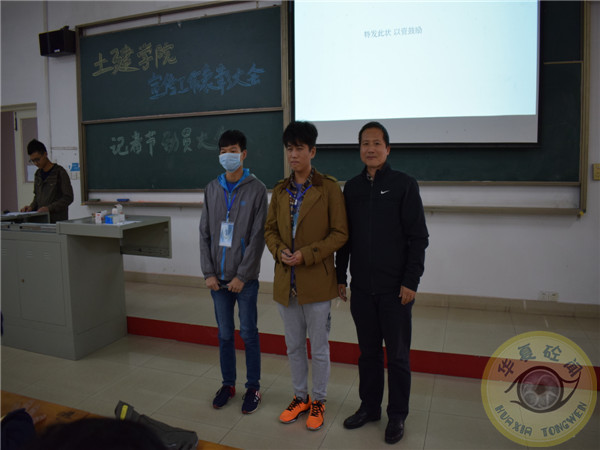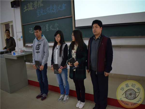 大会伊始,华夏砼闻新闻部部长周浩根据《土木与建筑工程系宣传工作奖励办法》奖励方案公布了在2016年9月至10月获得奖的名单,共有18名同学获奖。随后,吴振琦和王江洪分别为为获奖代表颁分发了精美礼品,并合影留念。激励并鼓舞了受表彰的同学,也正面的引领大家用勤奋和努力去书写大学的新篇章。