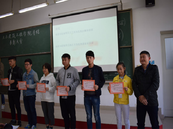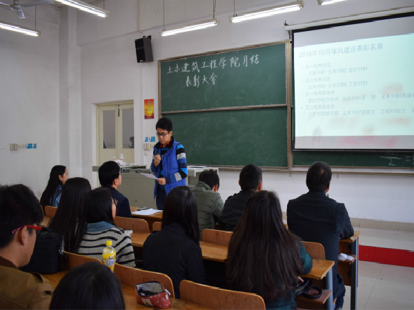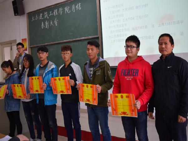 随后,杨柳宣布了在“学风建设”活动中表现优秀的班级和学生颁奖,奖项包括优秀班级、优秀寝室长。辅导员王江洪、杨志才分别为他们颁奖,在掌声中,会议进入高潮。