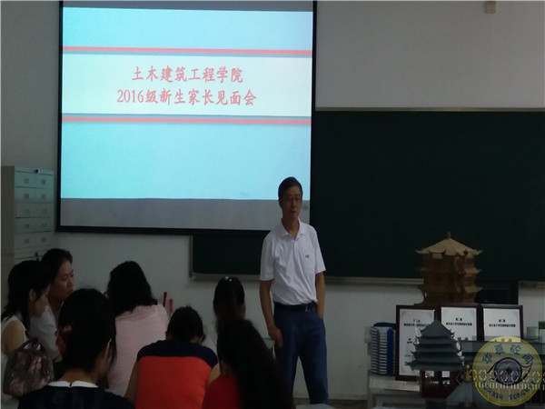 2016年9月10日,迎新活动正如火如荼的进行着。午间11时,我院针对学生家长于大土木工程楼模型实验室514-2展开新生家长见面会,组织召开了家长见面会,大会由院长杨和礼教授亲自担任主讲。