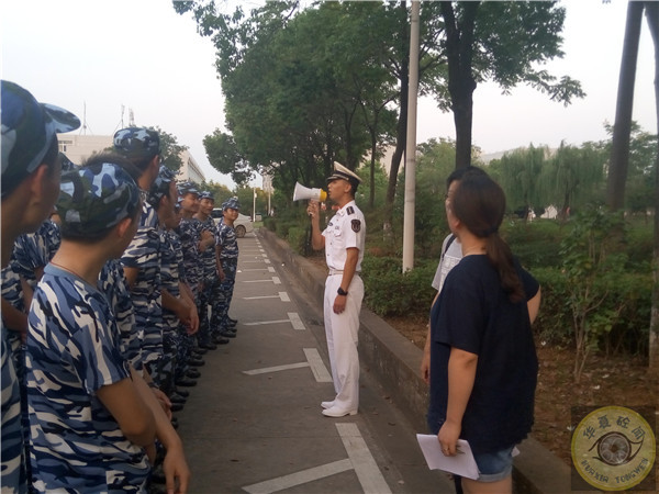 随后,两位教官踏着正步,一步一步向队伍走来,挺拔的身躯,坚硬的双臂,每一步走的都如此有力。到达队伍后,他们分别自我介绍,高亢有力的声音在场上回荡。
