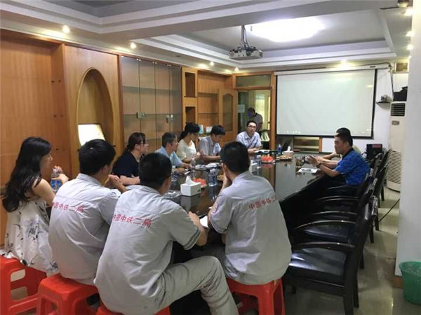 杨院长一行人抵达公司后,与项目部书记李春明、总工程师曾秋虎、工程部部长苗宇滔及5名应往届毕业生代表一起召开座谈会。李书记介绍了目前地铁行业和诚通公司概况,说明了中铁二局在武汉的业绩项目,并邀请我院老师现场观看地铁施工视频和城通十年宣传片。