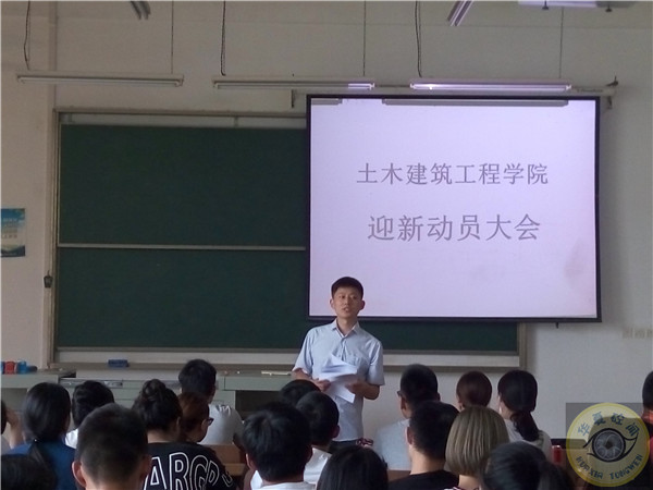 9月8日中午十二点四十,我院于一教104召开迎新动员大会,为迎接16级新生做最后的安排与准备。会议由土木建筑学院团学联主席团主席吴云辉主持召开,学工办主任潘晶、团总支书记郭杰、各级辅导员以及团学联、各协会成员均参加了此次会议。