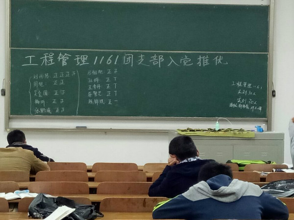 2016年10月30日晚上6时30分,工程管理1161班的全体同学在一教102进行了“团支部入党积极分子推优活动”。