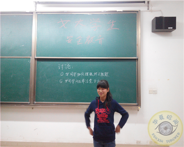 这次讨论会进一步提升了班级女生对出行安全的的重视性和注意事项的了解,对身处大学时代的我们颇有益处。
