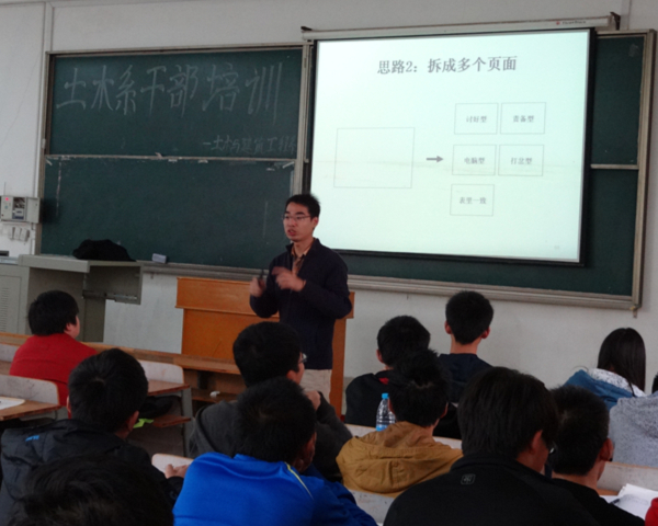 在第一讲由李敬老师对PPT制作进行讲解,他以风趣的演讲吸引众多同学的关注,激发了不少同学对PPT制作的热情。