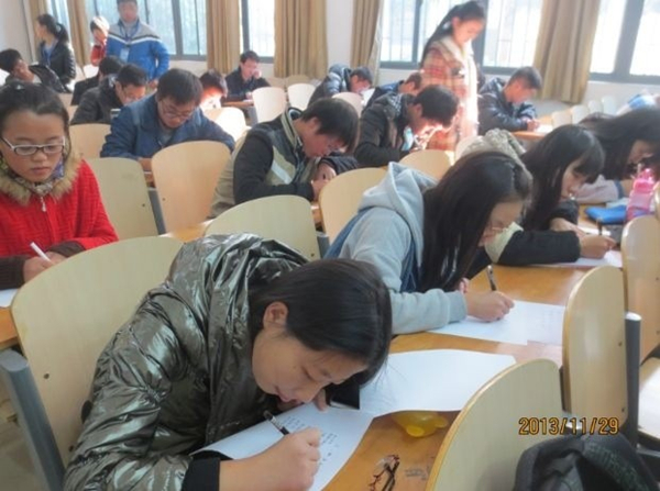 参赛者都很积极、认真,都在用心书写着汉字,并积极配合工作人员开展工作。另外,我们的活动还吸引了外系的同学参加,这让我们更坚信这次活动很有意义:在科技高速发展的今天,还有人拿起笔认真地书写,尽心地完成书法,参加这次书法比赛得亲们都是很棒的!