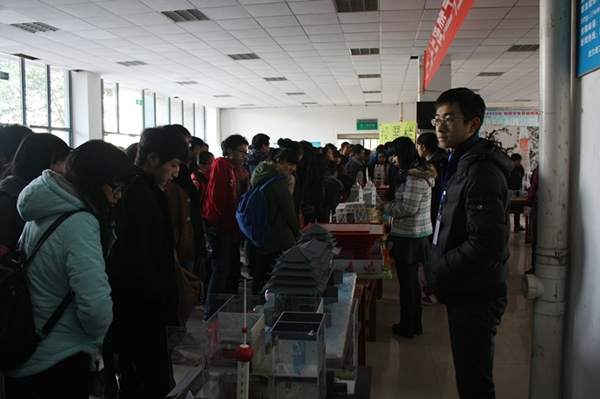 2013年12月11日早上8时许,同学们期待已经的“土木与建筑工程系第八届模型设计大赛作品展”在2教大厅正式开展,学校各级领导亲临展会观展、评展,同学们热情投票。