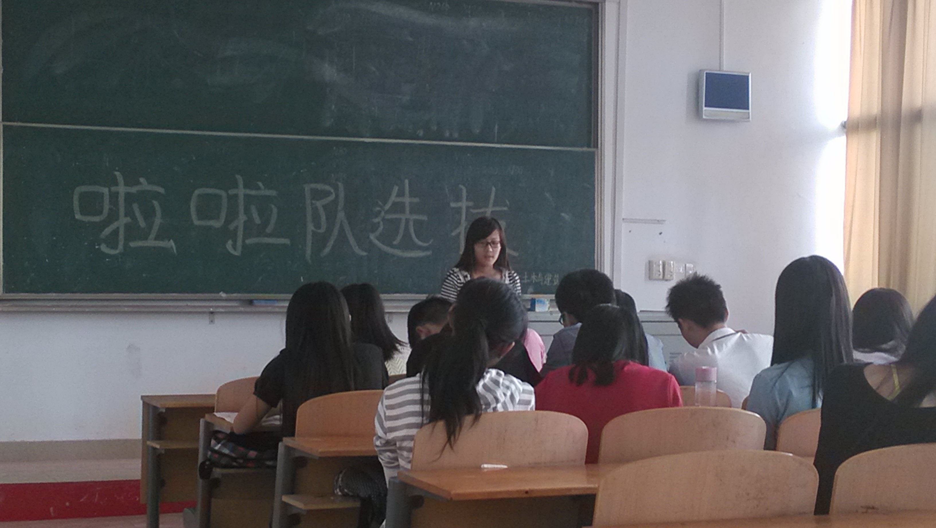 “炫动你的青春,玩转我的赛场”。2013年10月12日,土木系啦啦选拔仪式如期举行,啦啦队的选拔由女工部安排筹办,历年来活跃在新生杯篮球赛、迎新晚会、华夏杯足球赛等系列活动中,是土木系一道亮丽的风景线。本次选拔活动由女工部12级部长主持,邀请到了土木系主席团、往届的啦啦队长当评委。竞选的学妹们来自不同的班级,选拔目的也不尽相同,有的是为了“以舞会友”,有的是为了学习一种知识、技能。看到学妹们一个个充满信心,青春洋溢的前来竞选,让我们相信,土木啦啦队定将延续风采,展现真我!