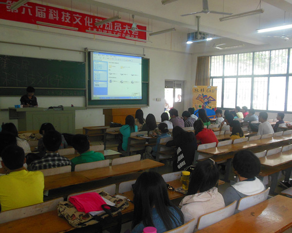 随着两位主持人的上台,此次大会的序幕正式拉开。首先,土木系团总支书记潘晶老师为我们讲述了往届科技文化节系里取得的成果。接着,摇篮工程师协会副会长给我们介绍了这次比赛项目及参赛时间,主要项目有CAD制图和工程测量。副会长也给这些比赛项目作了简单的介绍。谈及此次比赛的意义和重要性,大二辅导员也强调了