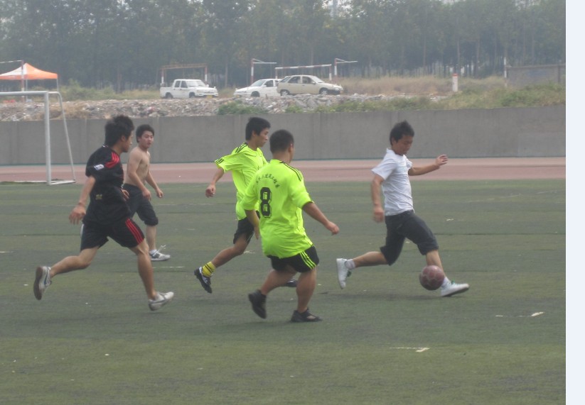刚上场不久,土木系的11号球员表现出了他的精湛球技,引来一阵喝彩,开场不到两分钟土木系就进球取得一分,球员们在场上你争我抢,虽然他们都不是职业球员,但是都表现出了十分强烈的职业素养,都在为自己的球队拼搏着,奋斗着。另一方面,双方的球员在场上表现得十分友好,机电系经过一段时间的调整,很快就连进两球。最终土木系以1:2不敌机电系。