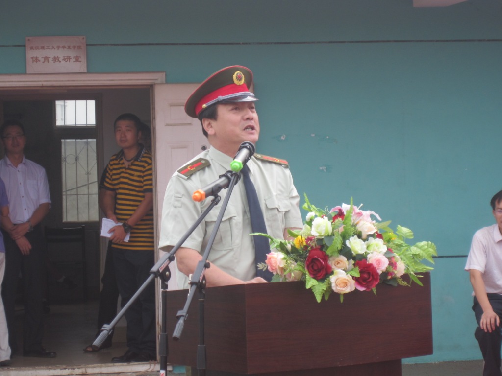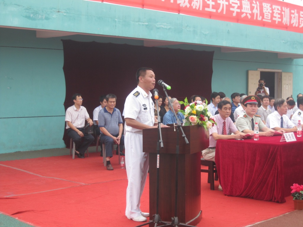 海军工程大学陈力生大校指出国防建设是每位有志青年不可推卸的责任,要求我院学生努力提高素质,使军训成为人生的新起点。要求各位参训官兵文明训练、安全训练。