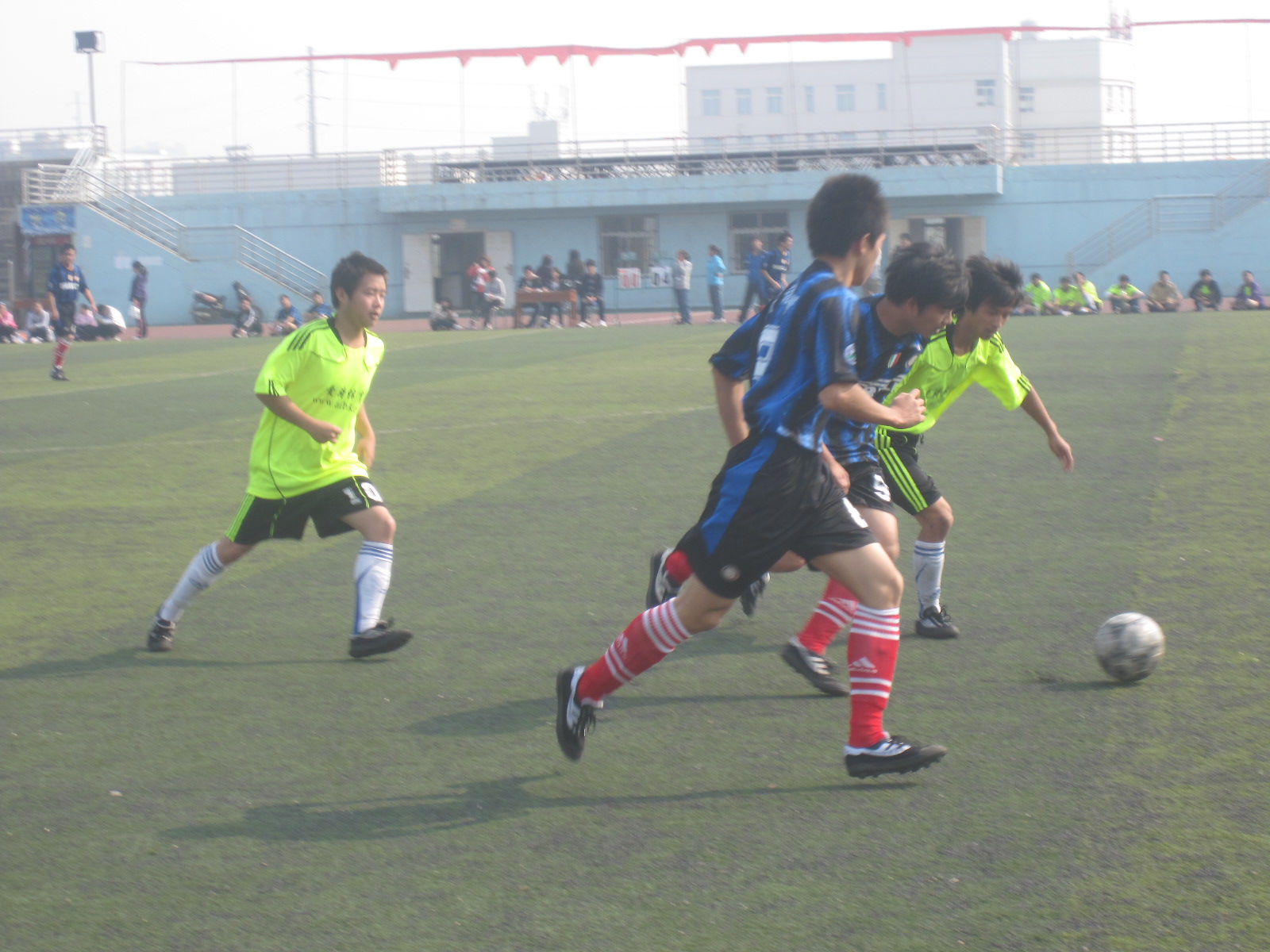 比赛开始之前,已有不少同学闻讯前来准备观赛。随着比赛开始的哨声响起,场外的呐喊声、擂鼓声盖过了云天,双方队员们都投入到了紧张的比赛中。10 点15分,我系8号球员带球一连晃过了对方好几位防守球员,一脚将球踢进,赢得开赛第一球,场上气氛达到了一个小高潮。接下来的比赛愈发精彩。10点18分,我系4号球员一脚远射进球得分,与第一次进球仅隔三分钟,比分变为2比0,我系球员势气大大提升。对方球员见此状况有些着急,于是加快了进攻,试图抢断我系球员的运球,好几次从中场切断,可他们在传球的过程中过于心急而连续失误,我系球员又将球抢夺回来。抓准外语系球员的防守漏洞,在10点29分时,我系的8号球员再次将球踢进,比分变为3:0 。 此时,我系球员们已轻车熟路,同时也看清了对方的防守盲区。对方球员们由于连续失误,情绪有些失落。然而,比赛还在继续,我系球员们趁着高昂的势气,继续向对方猛攻,又连续得分,最终我系以13:0大胜外语系。
