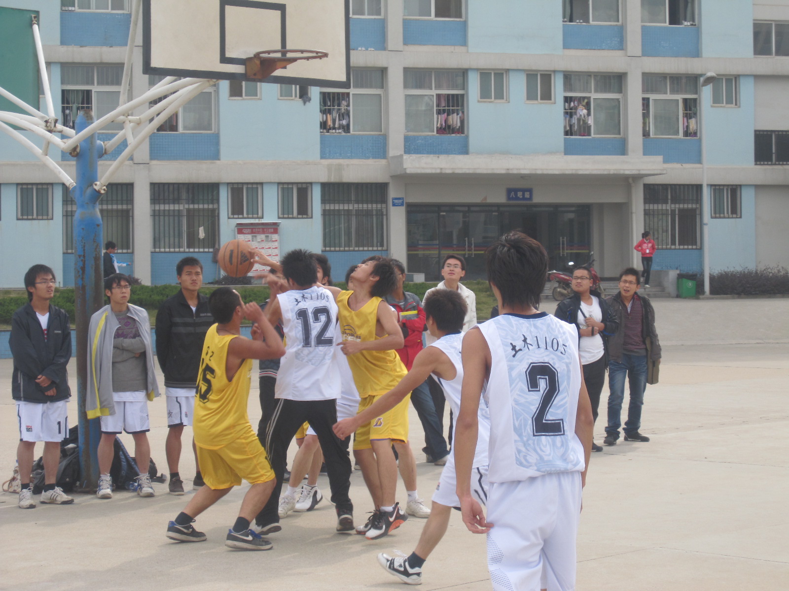 秋高气爽的季节里,为培养我系大一新生的集体荣誉感和拼搏进取精神,我系准备已久的“新生杯”篮球赛正如火如荼地进行着。11月1日中午土木1105班和建工2103班对抗赛在八号楼对面篮球场激烈地进行着。