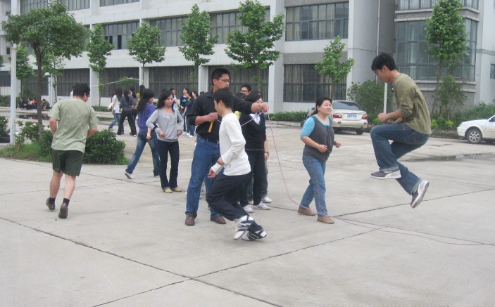 5月18日正午12点,在我院行政楼南侧,举行了一场声势浩大的趣味跳绳比赛,参加比赛的是我院各系的老师和学工处辅导员。天气阴沉沉的,但丝毫抵挡不住老师们参加比赛的热情,老师们个个精神饱满、跃跃欲试。