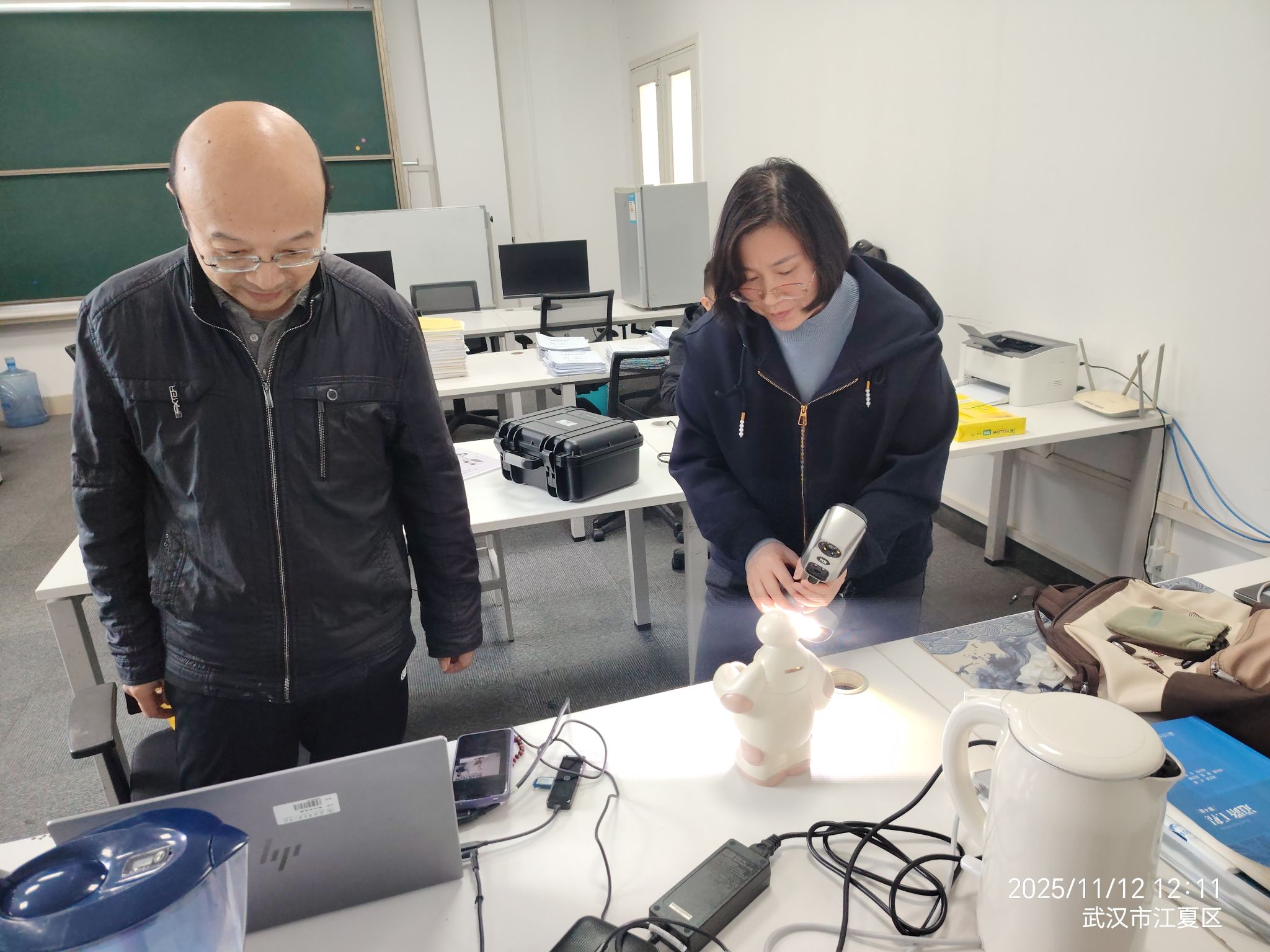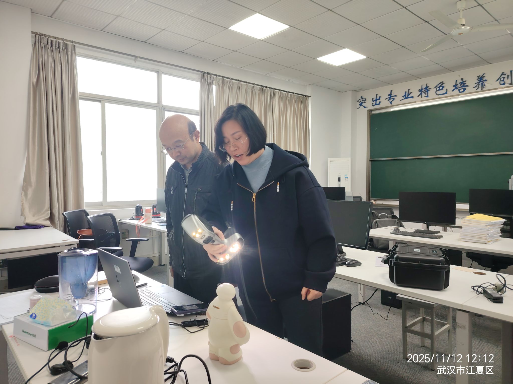 以何桥敏和卫涛老师为例,近日,他们携手推进3D扫描仪的运行和使用。