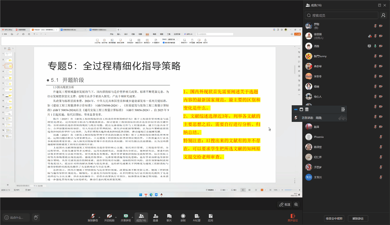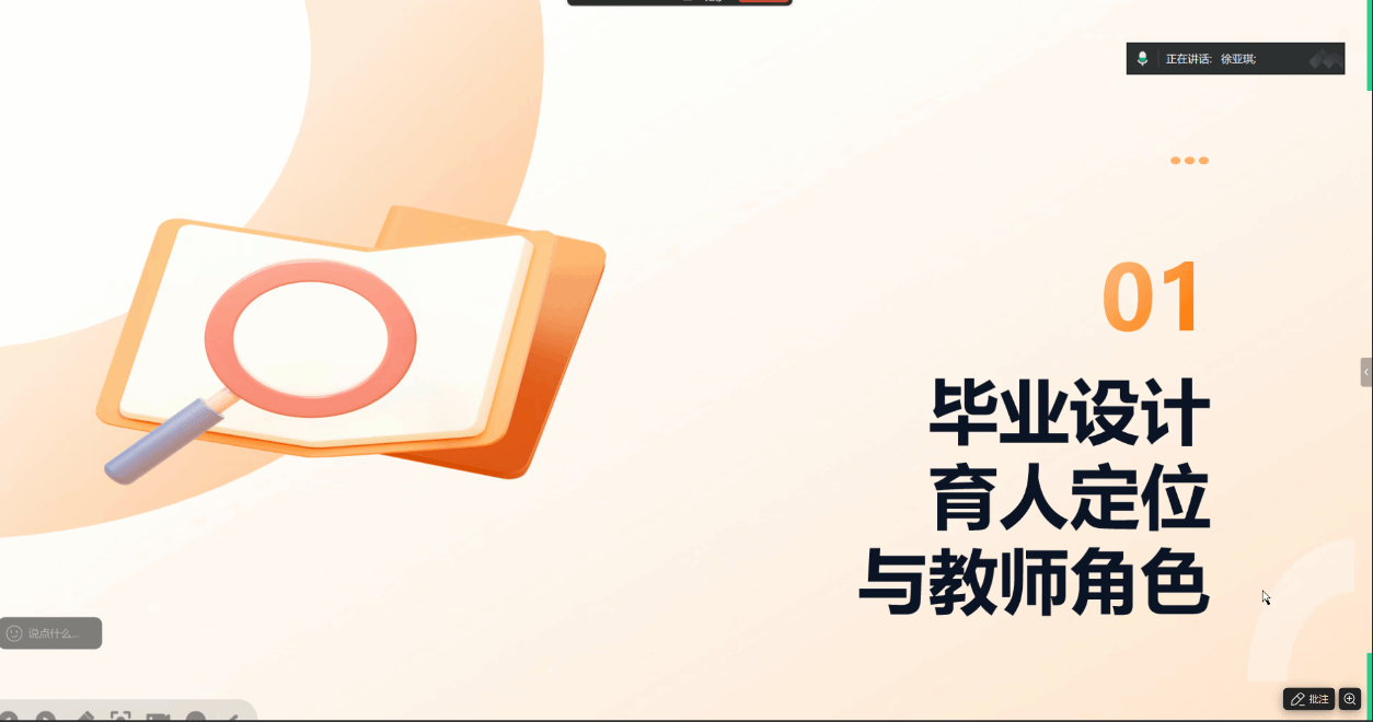 针对过程指导与沟通环节。周薇老师详细讲解了开题、中期、攻坚、撰写各阶段的关键任务与指导技巧。特别强调中期检查是确保毕业设计(论文)的重要节点,对于未达到阶段深度要求的同学需要加强督促和指导。同时分享自己与学生间的定期沟通机制方法,并提醒教师关注学生的心理状态,在学术指导的同时给予必要的人文关怀,构建教学相长、和谐共进的导学关系。
