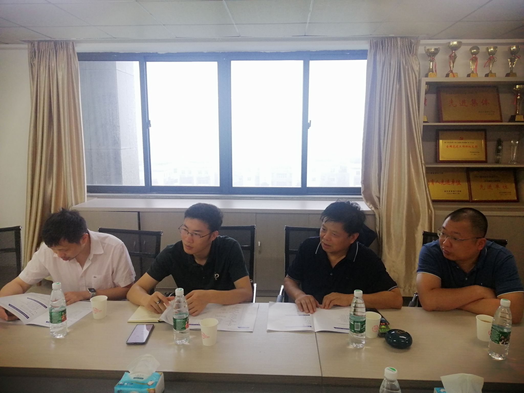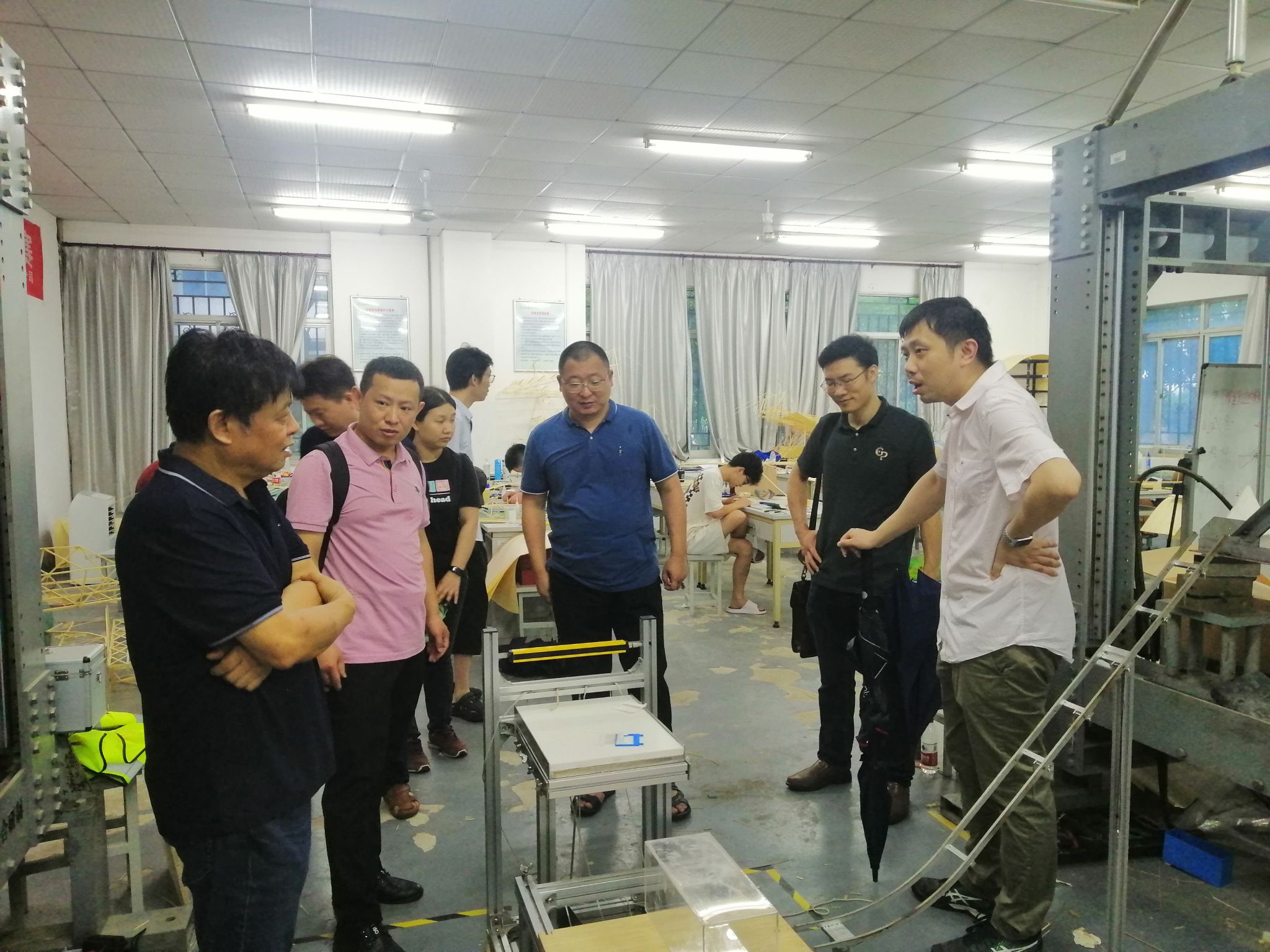 2023年7月8日上午,第十届湖北省大学生结构设计竞赛专家委员会主任杜新喜、竞赛秘书处秘书长袁焕鑫和湖北工业大学竞赛指导专家余佳力一行来校检查竞赛筹备情况。土木建筑工程学院院长潘梽橼、党总支书记毛峥毅、副院长杨易、院长助理靳帮虎和竞赛筹备组成员热情接待。