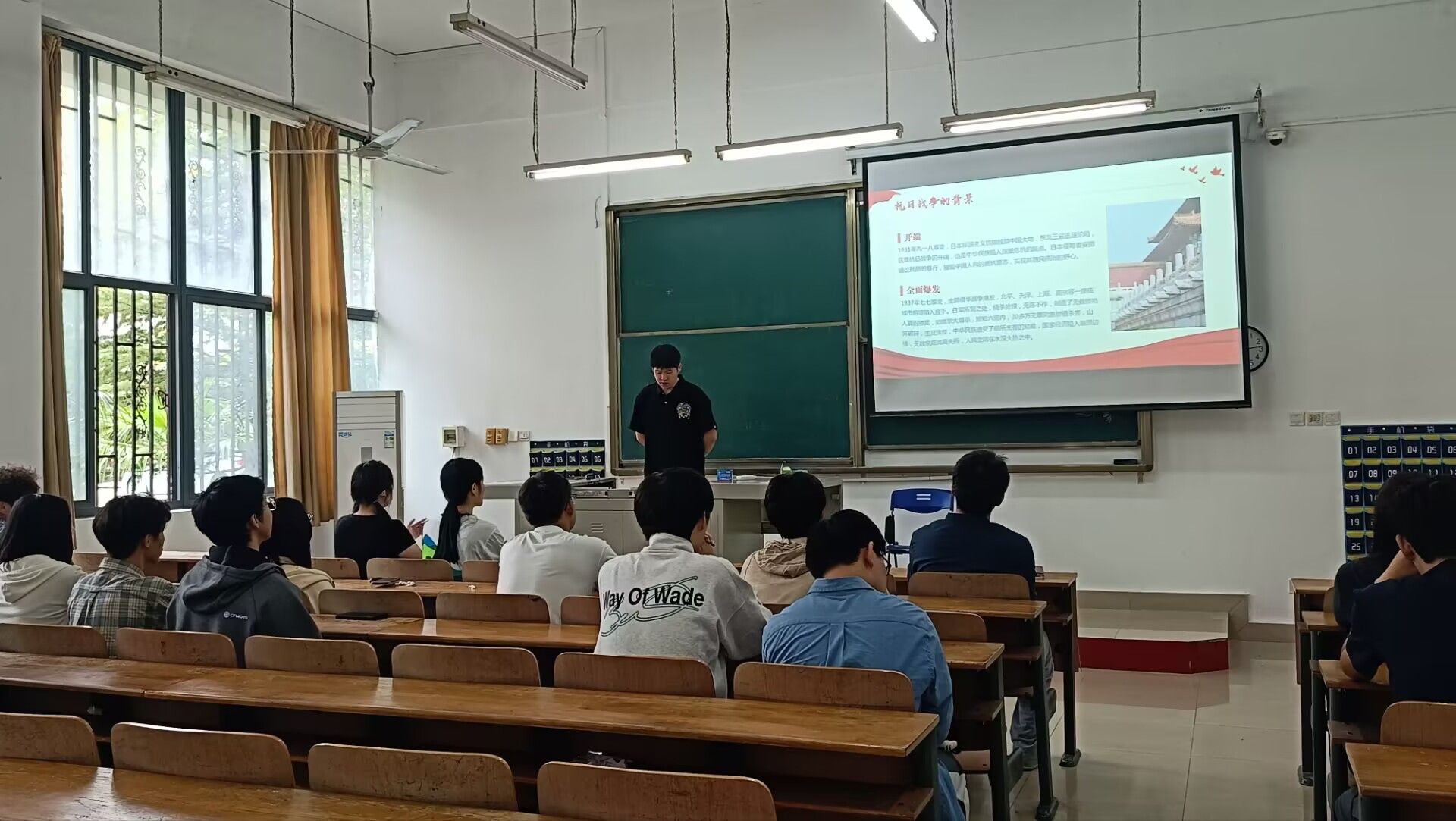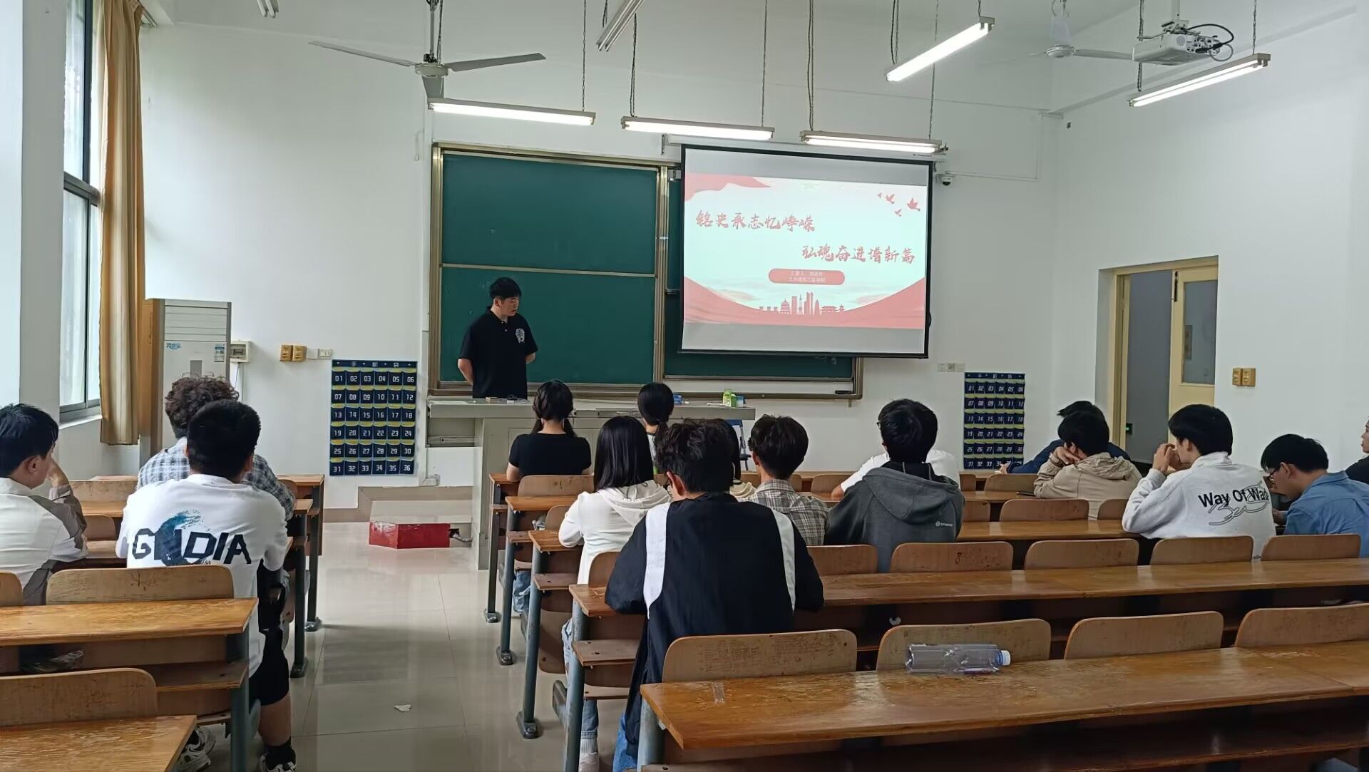 为纪念中国人民抗日战争暨世界反法西斯战争胜利80周年,9月22日中午,土木建筑工程学院在1-103教室开展了“铭史承志忆峥嵘,弘魂奋进谱新篇”主题理论学习活动。此次活动由刘雨杰主讲,学院全体党员及入党积极分子参加,旨在深入学习习近平总书记重要讲话精神,弘扬伟大抗战精神。