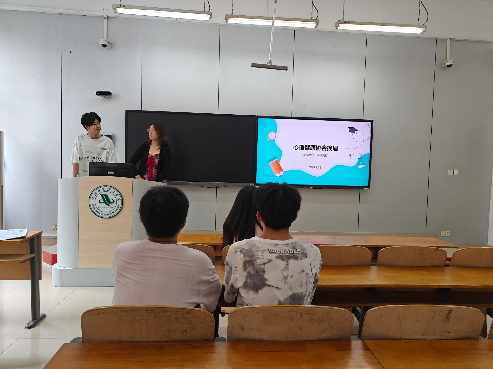 时光流转,使命相传,又是一年换届时。为进一步夯实土建学院心理健康协会思想引领与文化传播职能,2025年9月18日中午12点,换届大会在教学楼如约举行,这不仅是一场工作交接的仪式,更是新一代宣传人接过“话筒”,续写校园故事的全新起点。