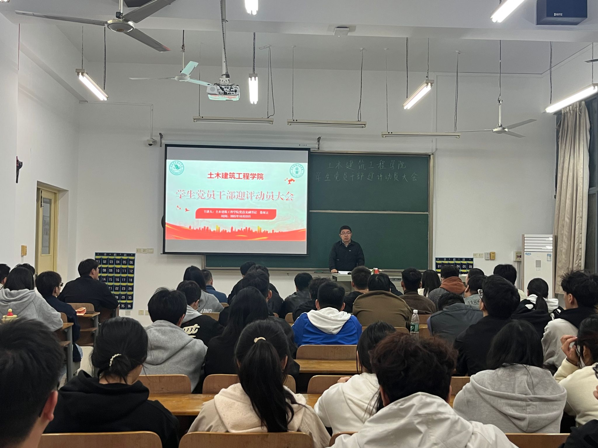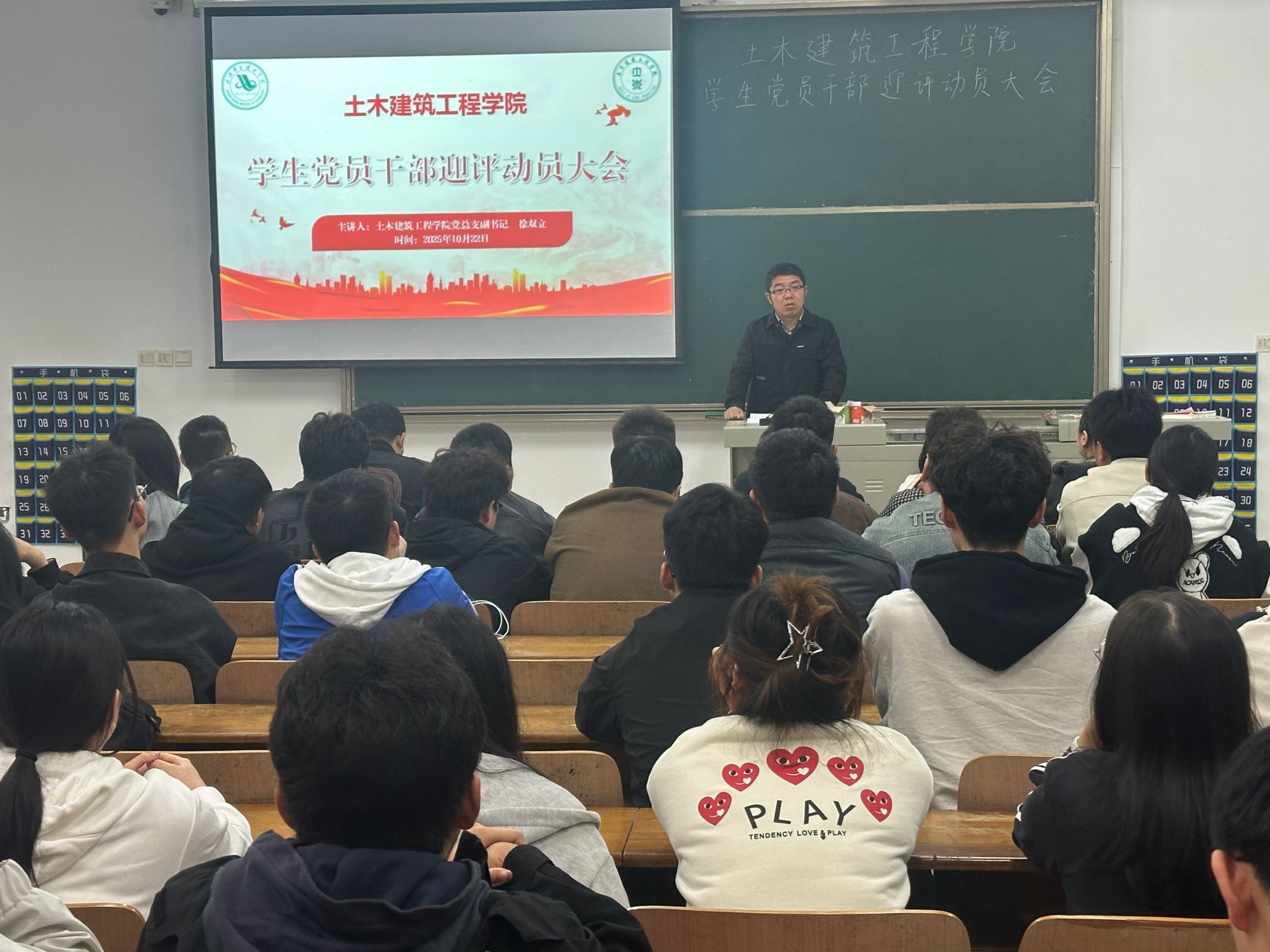 为全面凝聚学生骨干力量,扎实推进本科教学合格评估准备工作,10月22日下午6点,土木建筑工程学院召开党员学生干部迎评动员大会。学院党总支副书记徐双立主讲,辅导员杨柳、昌仪琳、黄呈、姚卓夫、程鹏和全体学生党员及学生干部参会。