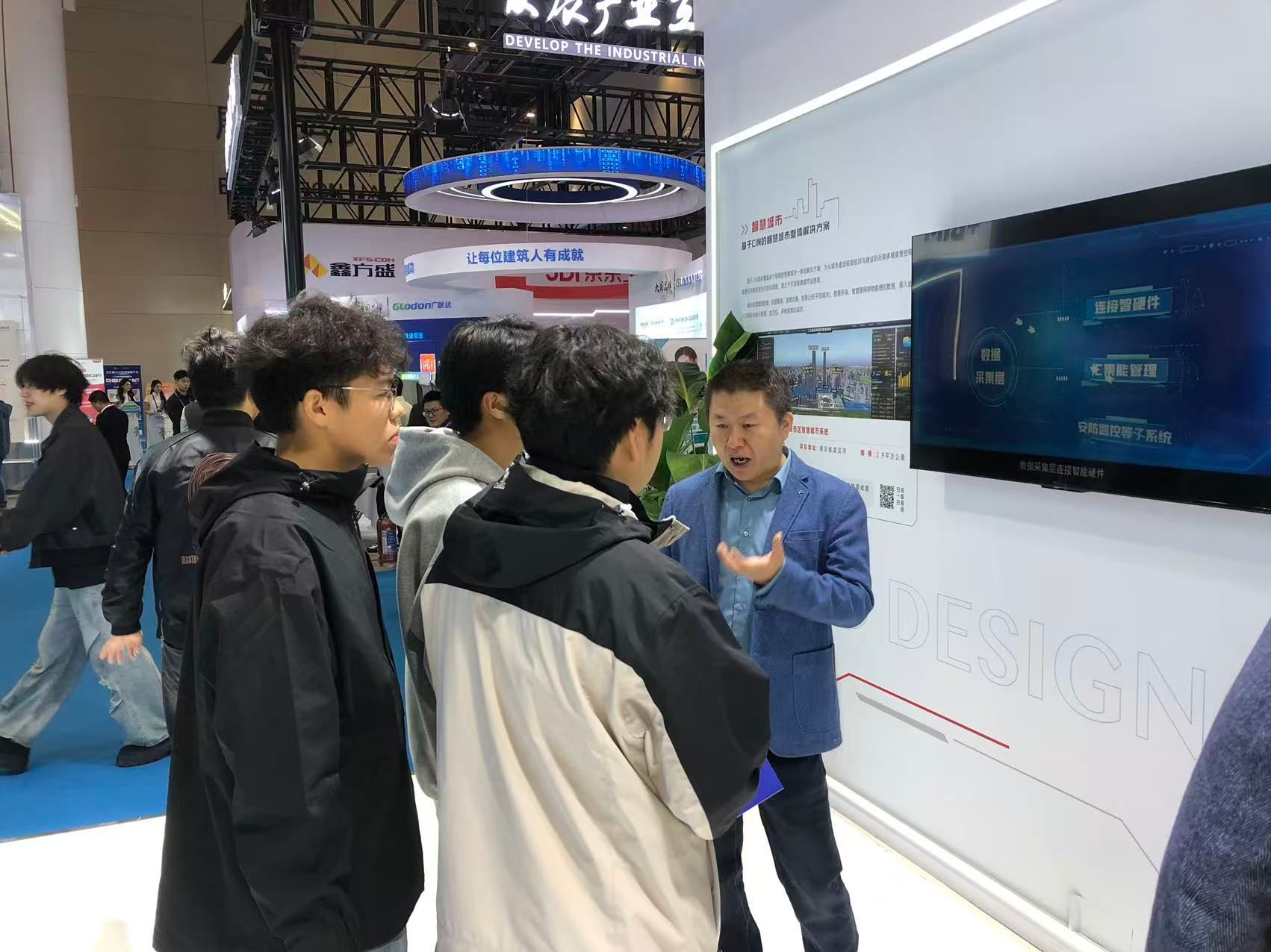 本次产业博览会,以发展产业互联网,共建“好房子”为主题,积极响应2025年政府工作报告中“推动建设好房子”的重要要求,加快推动建筑业转型升级,促进建筑业高质量发展。我们土木学子来到展厅,被来自全国各地的企业所吸引,大家各自为伍,纷纷往自己感兴趣的展台听取专业人员的介绍。在本次博览会上,有许多著名的央国企,如中建三局集团有限公司、湖北联投集团有限公司、湖北路桥等,让学生近距离与大企业面对面互动。