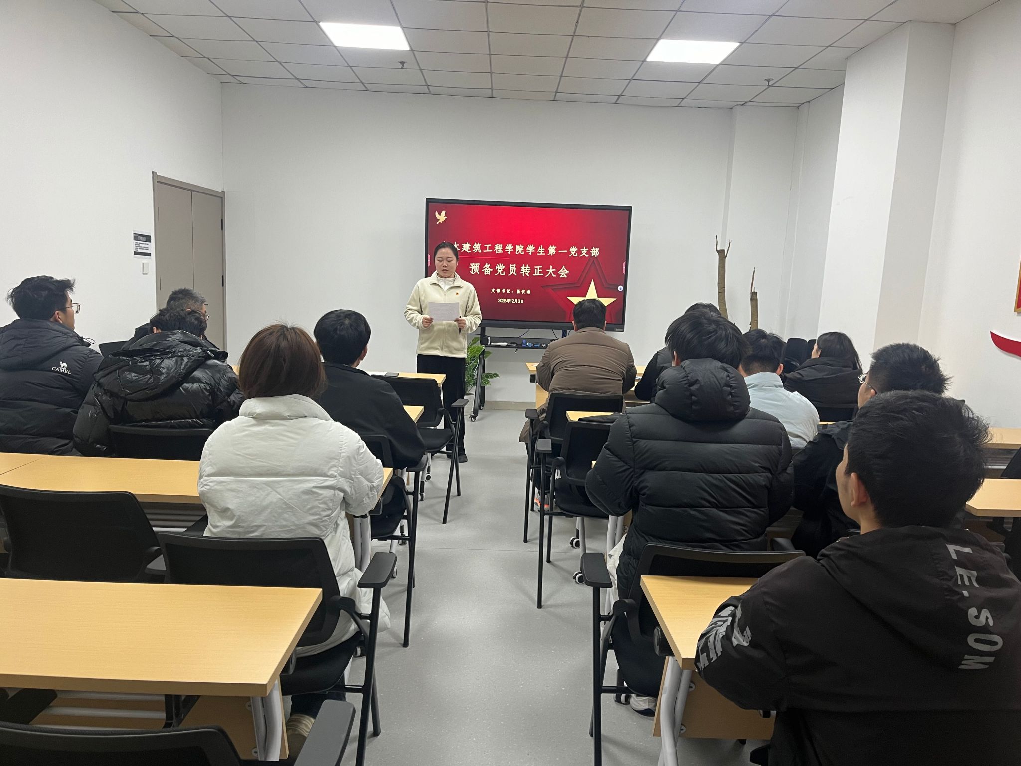 2025年12月3日中午12点10分,土木建筑工程学院一党支部成员在综合楼一楼会议四开展党员转正大会。会议由一支部支书记昌仪琳主持,党员敖翔,汪月荣,徐柯等同志参加。