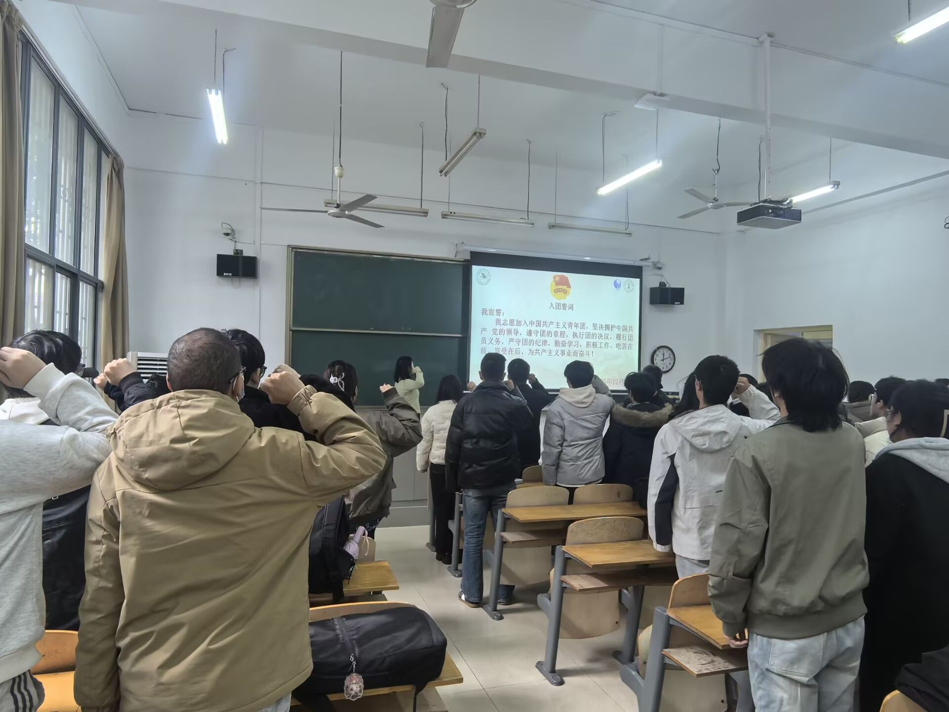 会议开始第一项议程土木建筑工程学院团总支书记昌仪琳老师致开班辞昌老师热情洋溢、语重心长的致辞寄托了对同学们的期望也提出了对同学们的要求,并带领大家一起宣读入团誓词