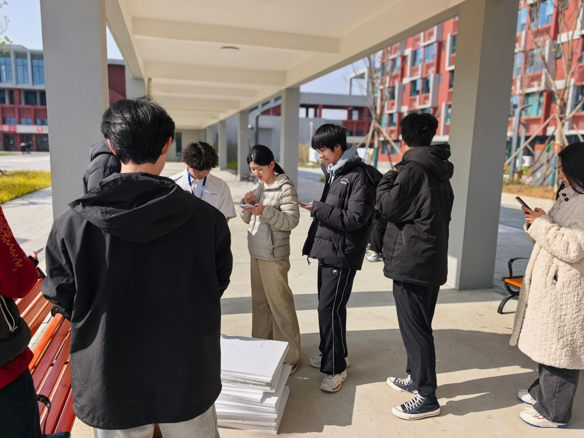 在新校区一号宿舍楼下,木板、胶水、颜料、零件等各式各样的模型制作材料,从基础的搭建耗材到精细的装饰配件,一应俱全。负责发放材料的各部门成员耐心地为同学们讲解材料使用说明,细致核对领取清单,确保每位参赛同学都能顺利拿到所需物资。同学们的脸上满是兴奋与期待,有的同学早早列好了材料清单,认真核对每一项物资,生怕遗漏关键配件;有的三五成群围在一起,一边领取材料,一边热烈讨论着模型的设计思路。