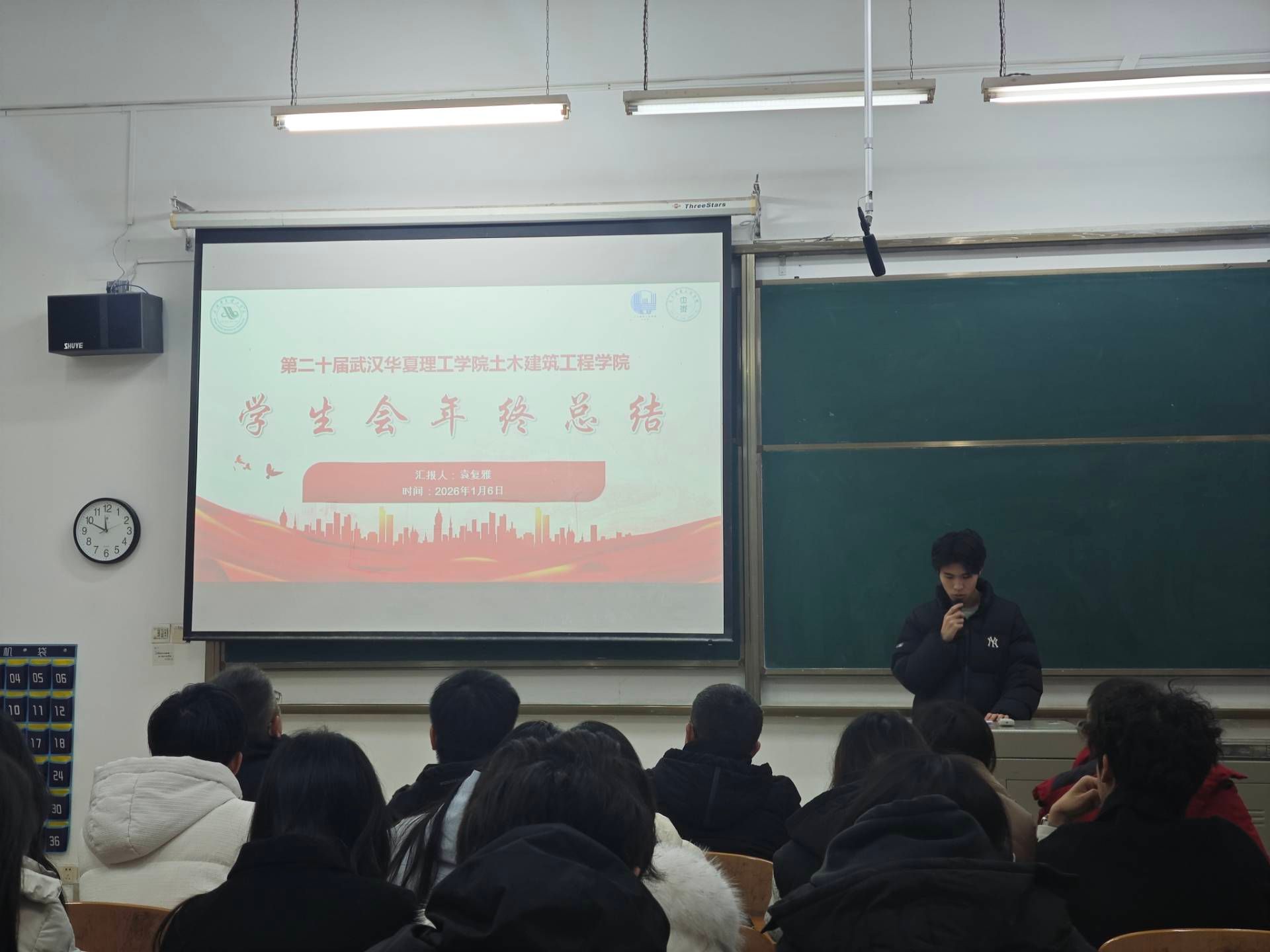 为强化学生骨干责任意识,提升工作能力,1月6日中午,土木建筑工程学院进行学生组织述职汇报,出席本次汇报的有:党总支副书记徐双立、学工办主任杨柳、团总支书记昌仪琳、青协指导老师黄呈、摇协指导老师姚卓夫、心协指导老师程鹏以及各组织负责人会长、副会长、部长、副部到场参会。