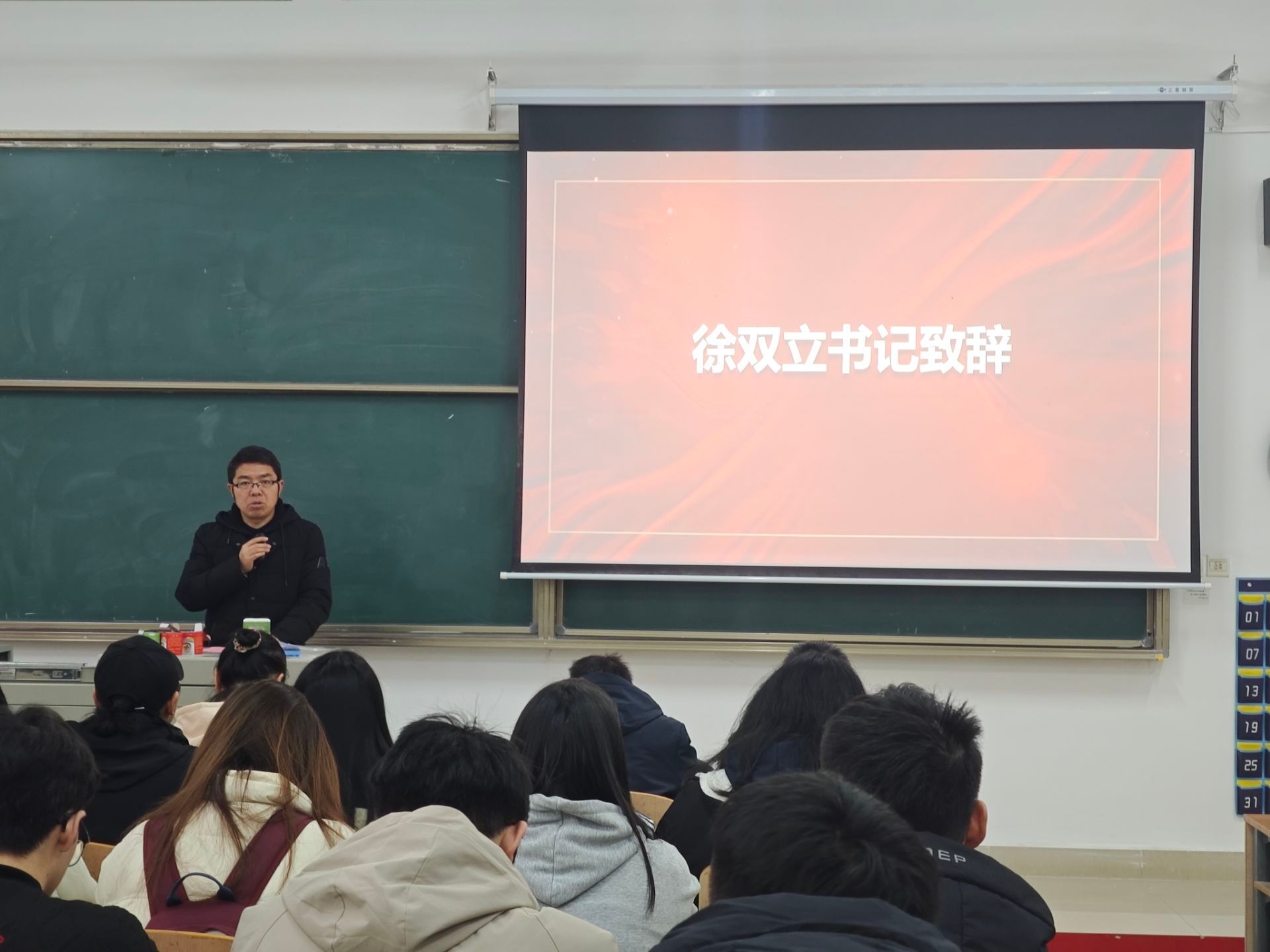 随后徐书记进行讲话,4次课的青马班培训短暂却充实,这段旅程,是思想的淬炼,是能力的锻造,更是信仰的加固希望我们以此为新的起点,将“青马”所学所悟,真正转化为实干笃行的强大动力,在服务同学、奉献校园的实践中持续发光发热,努力成长为信仰坚定、能力突出、素质优良、作风过硬的新时代青年政治骨干。书记也向大家提出三点希望:第一,希望青马学员做知行合一的“火种”第二,希望受表彰班级做文明风尚的“标杆”第三,希望全体同学做校园文明的“主人” ,颁奖典礼最后所有获奖人员进行合影留念。