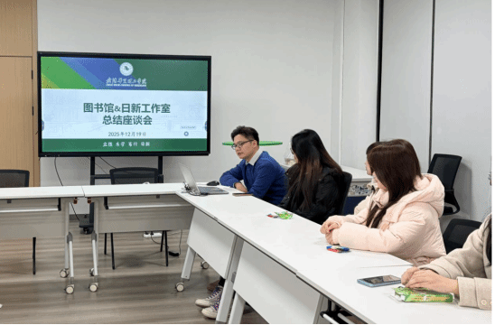 为系统总结合作成果、优化工作路径、谋划未来发展,2025年12月19日,图书馆与日新工作室在产学研会议室联合召开2025年度阅读推广工作座谈会。会议由日新工作室指导老师程权明主持,图书馆副馆长张莹、综合办公室潘霓聪老师及学生代表共同参会。