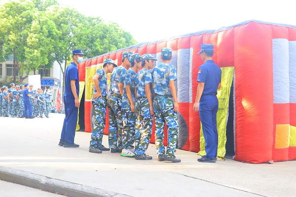 此次演练地点在八号楼篮球场,消防官兵们向各学院的师生进行消防演示,演练过程分为消防器材的展示和实际操作、高压帐篷的体验、登高车的展示和体验、灭火器使用教学四个部分。