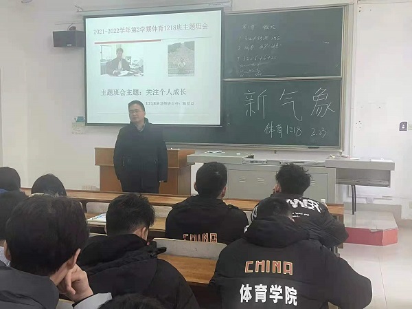 新的一年、新的学期开始了,为了让1218班同学们尽快地重新投入学习生活中,2022年2月2日下午,学工办主任陈世益组织体育1218班全体同学在3-302教室开展了以“关注个人成长”为主题的班会。