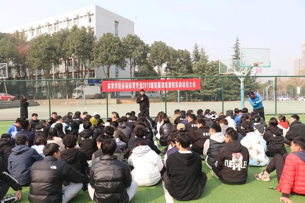 2021年12月8日中午12:00,体育学院休闲体育专业2019级拓展训练课程实训动员大会在拓展训练基地举行,此次动员大会由向杰老师主持,实习实训中心梁圣霖主任及2019级全体学生参加。