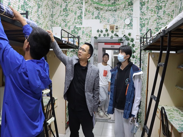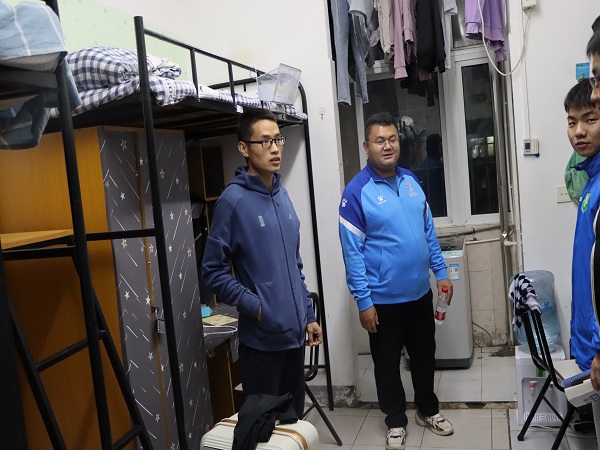 随后、陈主任,臧导和李导一起进行内务检查,为每间寝室的同学讲解内务卫生要求,对内务卫生做的好的寝室提出了表扬,同时也要求内务卫生不够好的寝室及时进行改进。并希望每位同学们都能够为自己提供一个整洁干净的居住环境。